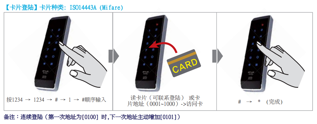 | 卡片/頻率 | ISO14443A(Miface) / 13.56MHz |